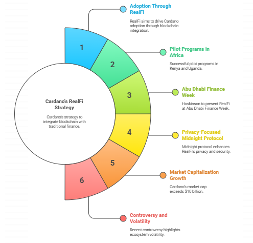 Các chương trình thí điểm ở Kenya và Uganda đã xử lý hơn một triệu khoản vay ngắn hạn, tận dụng dữ liệu thanh toán di động và danh tính đã được xác minh để đánh giá rủi ro tín dụng. Phương pháp này vượt qua các mô hình cho vay dựa trên đặc quyền đang thống trị tài chính phương Tây. Sau khi trở thành diễn giả chính tại Tuần lễ Tài chính Abu Dhabi từ ngày 8–11 tháng 12 năm 2025, Hoskinson cùng với CEO John O’Connor của Input Output Global đã làm nổi bật sự tích hợp của RealFi vào DeFi, hoàn chỉnh với các cơ hội lợi suất và tăng trưởng giao dịch.