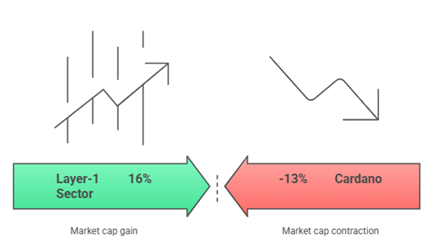 So với mức tăng vốn hóa thị trường 16% của lĩnh vực Layer-1 (trừ Bitcoin), sự sụt giảm 13% của Cardano nhấn mạnh sự ngắt kết nối về định giá. Các nhà đầu tư có thể đang định giá các rủi ro quản trị hoặc chờ đợi những tiến bộ rõ ràng về khả năng mở rộng nhưng báo cáo lưu ý rằng việc nắm giữ stablecoin là một điểm sáng: nguồn cung tăng 6% lên 32 triệu đô la, dẫn đầu bởi USDM (11 triệu đô la) và USDA (9,9 triệu đô la), báo hiệu một sự tìm kiếm sự ổn định giữa sự biến động.