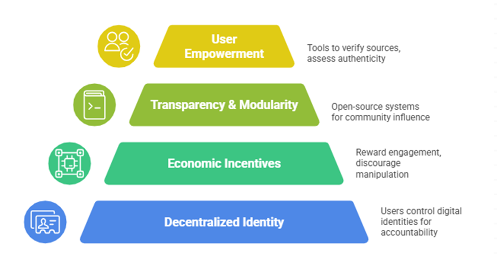 – Động lực Kinh tế (Economic Incentives): Tận dụng các mô hình dựa trên blockchain để thưởng cho sự tương tác chân thực và ngăn chặn hành vi thao túng.