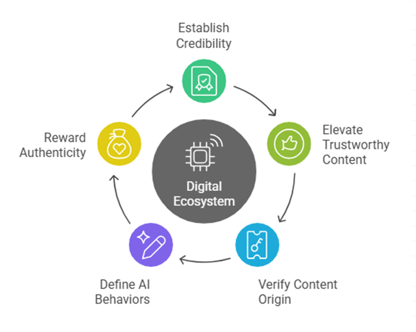 – ID Kỹ thuật số Có thể Xác minh (Verifiable Digital IDs): Liên kết nội dung với thông tin xác thực phi tập trung để thiết lập độ tin cậy và khả năng truy xuất nguồn gốc.