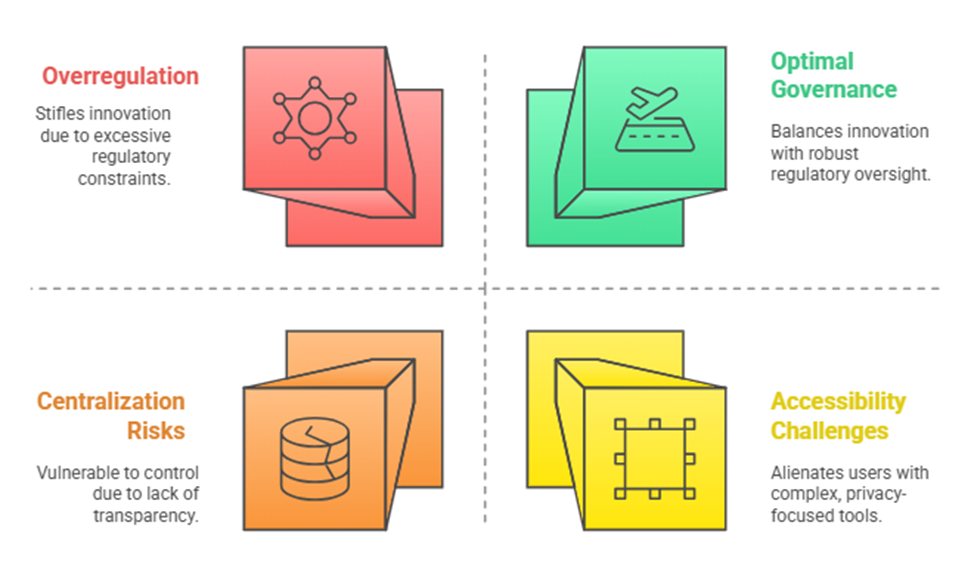 – Rủi ro Tập trung hóa (Centralization Risks): Ngay cả các hệ thống phi tập trung cũng có thể trở nên tắc nghẽn hoặc bị thao túng nếu không được quản trị cẩn thận.